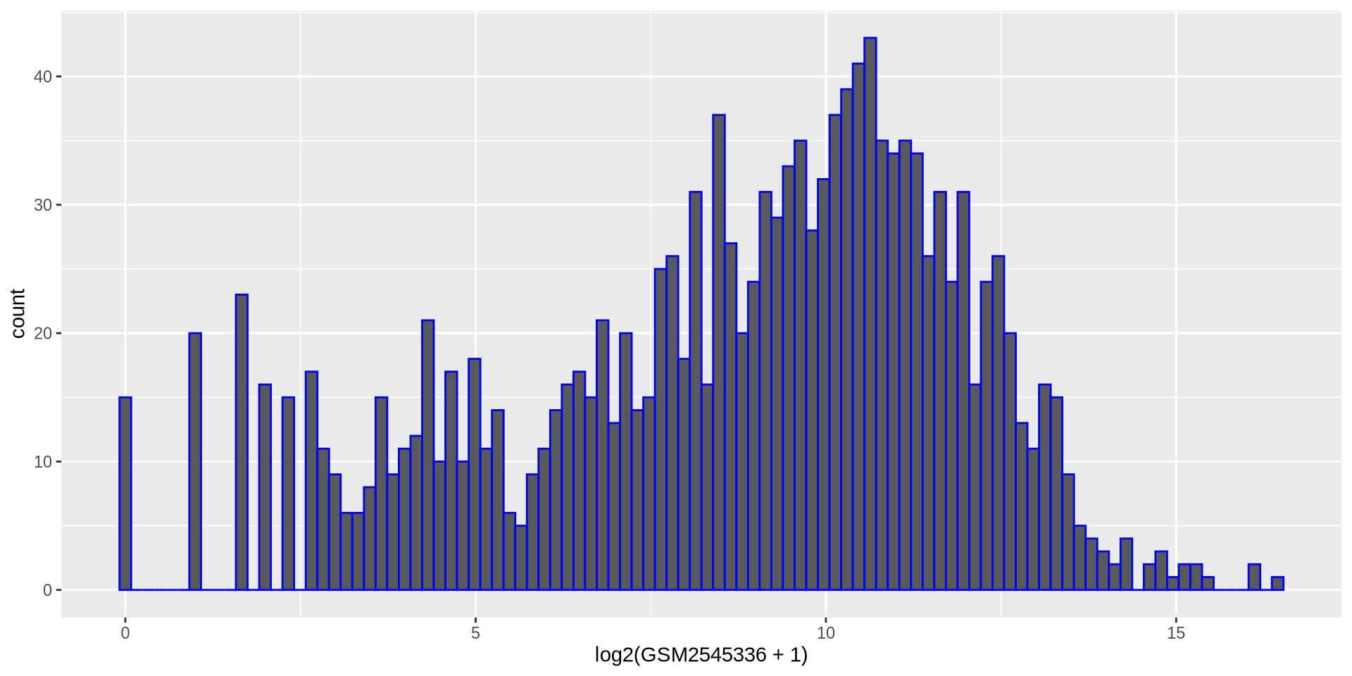 hist_plot = ggplot(rna, aes(x = log2(GSM2545336 + 1)))