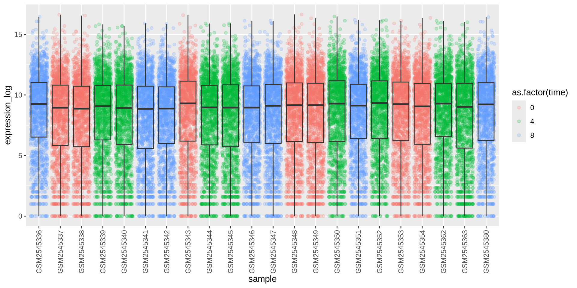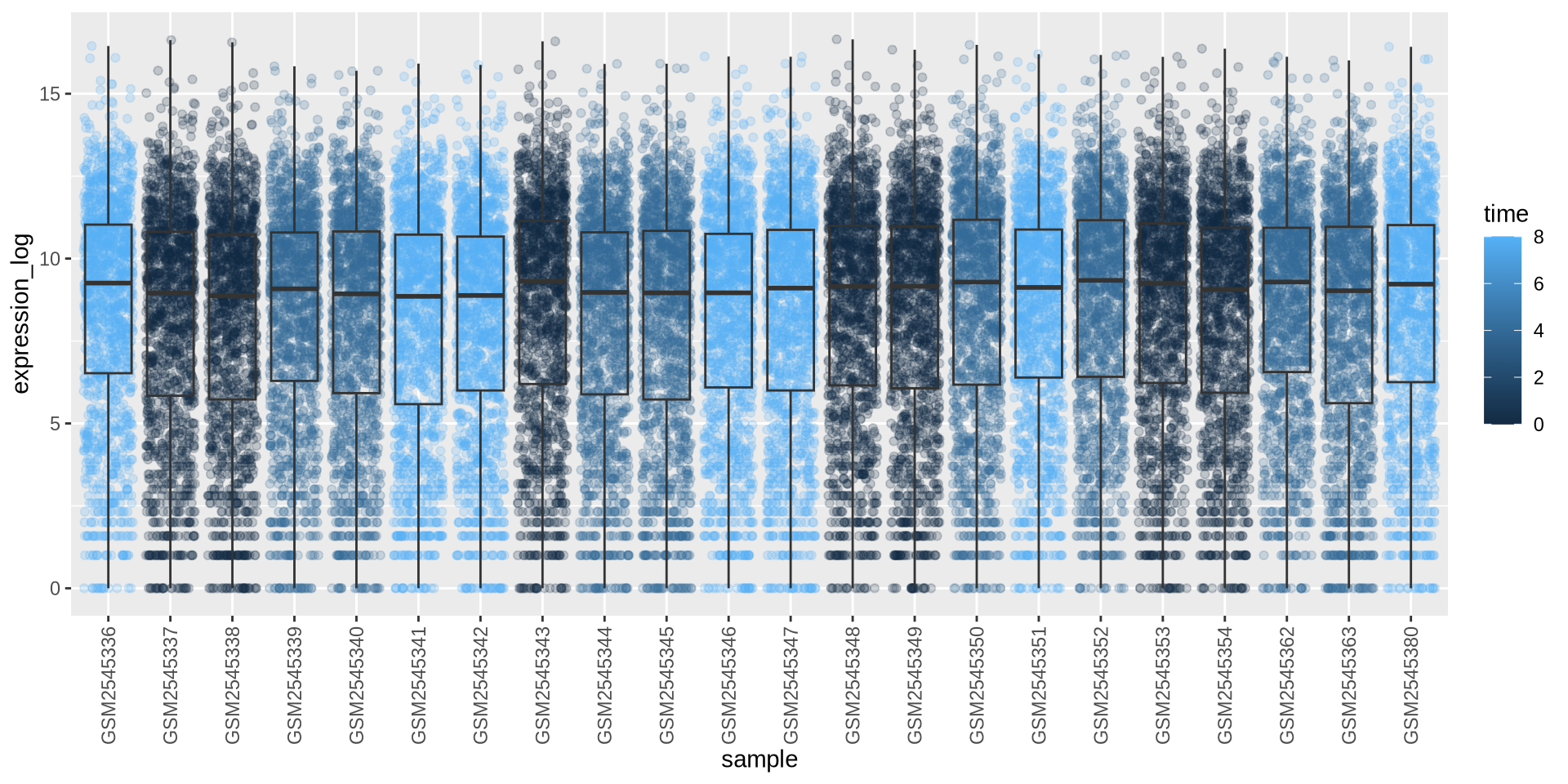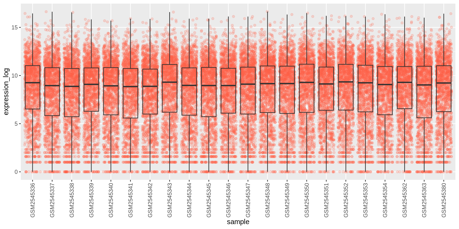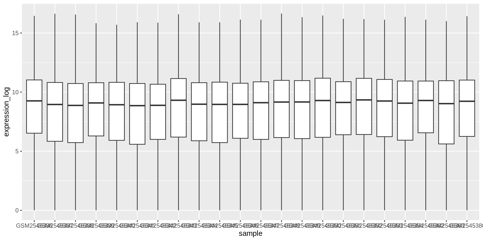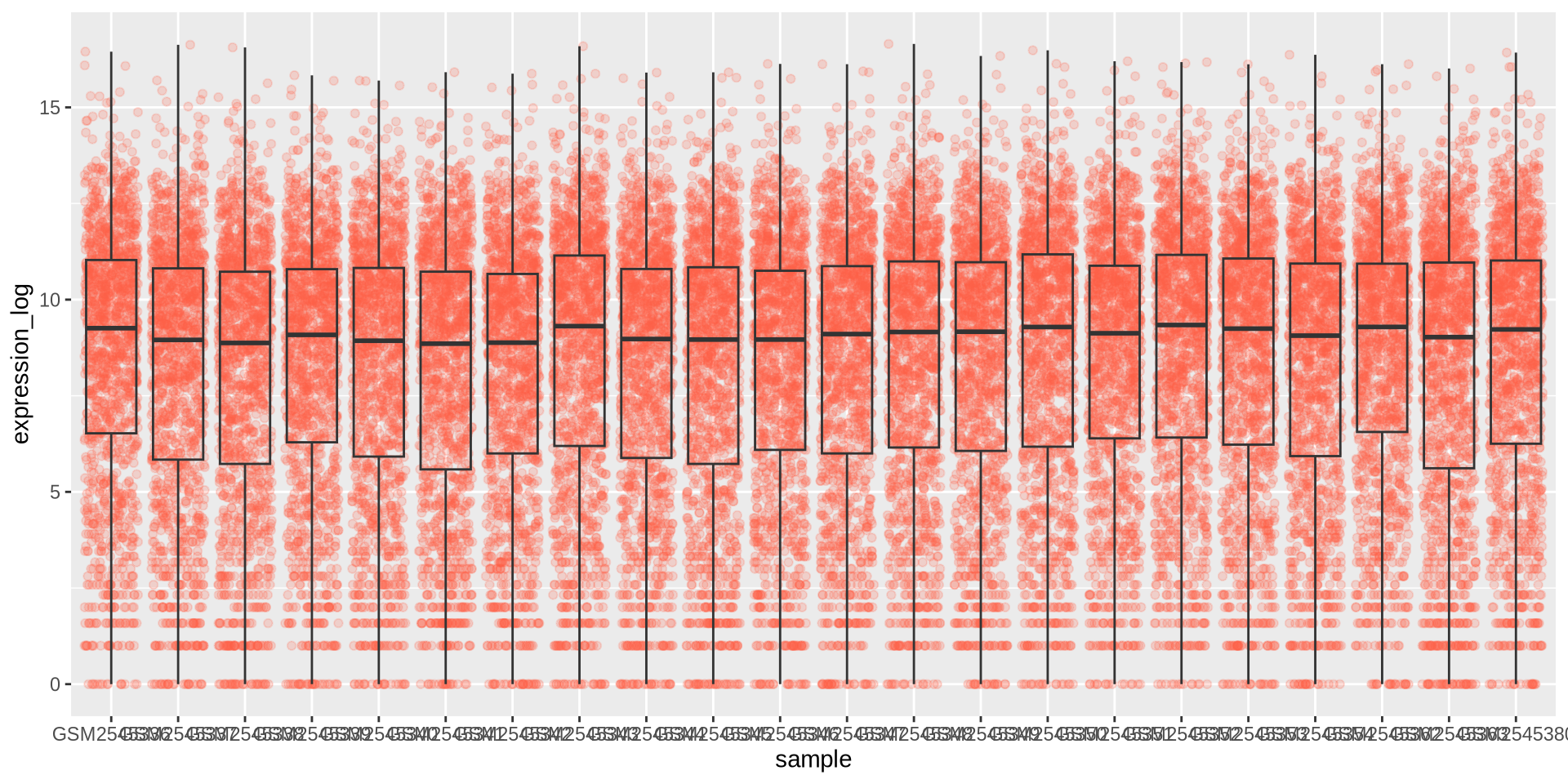 ggplot(rna_long, aes(y = expression_log, x = sample)) +